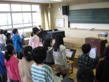 中庭を歩いていると,音楽室からきれいな歌声が聞こえてきたので,音楽室をのぞいてみました。