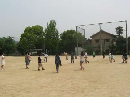 ドッジボールです。ボールを投げたり,キャッチしたり,当たらないように逃げたり。