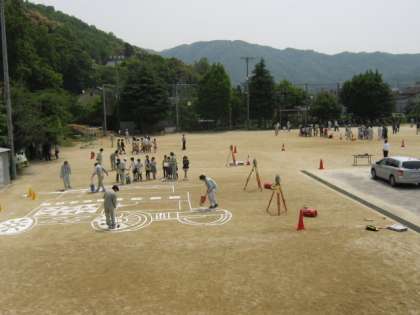 測量体験学習では、12時までグランドで測量体験したあと、成績発表がありました。誤差が一番少なかった子どもたちは記念品をいただくことができ、大喜びでした。
