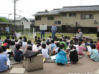 標柱を作成・設置してくださった方が,標柱に表示されている経度や緯度について説明してくださいました。
