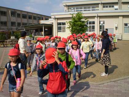 3年生が,予定通り大文字山に向かって,元気よく出発していきました。
