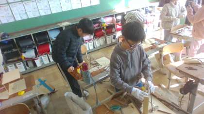 「ひみつのすみか」という題材で作品を制作しています。自然の材料を生かし、誰が住んでいるのか想像しながら作っています。作品展で展示予定ですので、是非、だれのすみかなのか覗いてみてください!