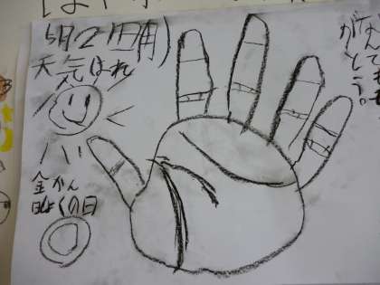 自分の手をよく見て描きました。