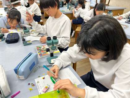 アブラナの花のつくりをじっくり観察しました。双眼実態顕微鏡を上手に使っていました。「花粉が見えた!」という声も聞こえてきました。