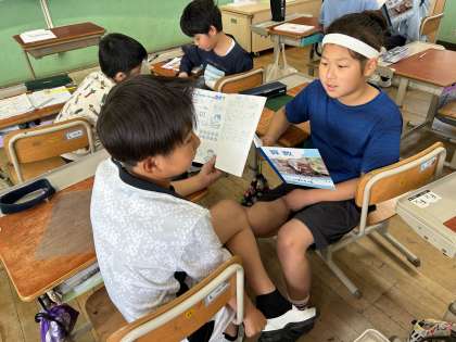 5年生の算数科「整数と小数」の学習を進めています。これまで学習してきたことを思い出しながら、小数点の移り方を考えることができました。