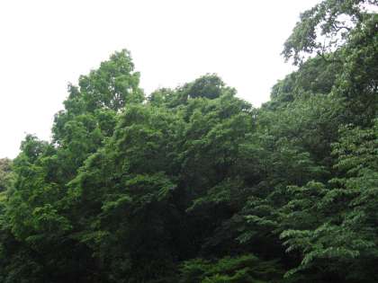 学校の裏山の新緑が,雨にぬれて一段と鮮やかさを増しました。