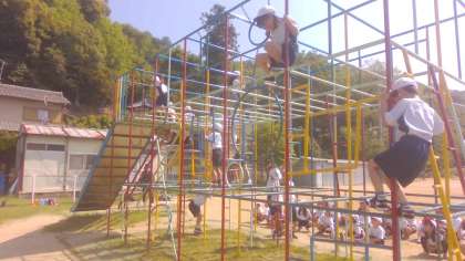 さっそくこの日の休み時間から、多くの子が総合遊具に集まり、遊んでいました。