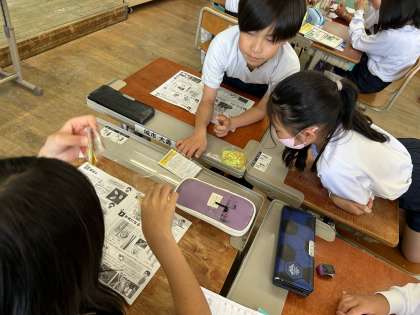 5年生のかがやき学習では、食について考えていきます。子どもたちから、自分たちで育てたものを食べたり、販売したりしたいという声があがり、お米を育てることになりました。今回は、種籾の芽だしに挑戦しました。