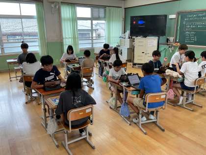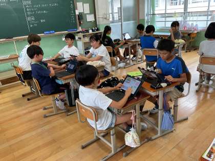 外国語では、夏休みの出来事や最近のMyニュースを伝え合いました。「相手の目を見てゆっくりはっきりと話す」「リアクションをとったり質問をしたりする」など、各自がめあてをもってやりとりに臨みました。
