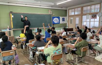 5年生は夢の教室として、元Jリーガーの原一樹選手を招いて、夢についてのお話を聞きました。何度、失敗しても挫けず、夢を諦めない原選手の強い気持ちが、夢を叶えるためには大切なのだと振り返る様子もありました。