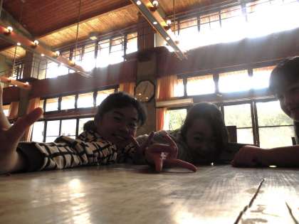昼食を終えて、次は冒険の森アスレチックに挑戦です