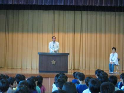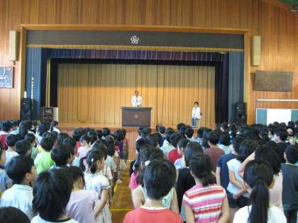 明日は,朝から5年生がスチューデントシティに出かけるので,1日早いですが,全校がそろっている今日,この会を行いました。