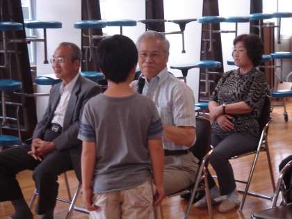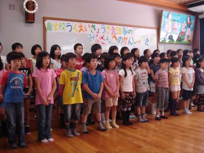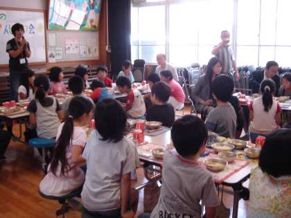 学校を代表して,3年生が学校運営協議会理事さんと交流をしました。歌のプレゼントをしたあと,インタビューをして,昔の学校の様子や,昔の給食,好きだった教科やどんな遊びが流行っていたか等,教えていただきました。そのあと,一緒に給食をいただきました。給食の場面では,近くにおられた理事の方に,いろいろお話をしたり,給食後に肩たたきをしたりする姿が見られ,子ども達はとてもたのしいひとときを過ごすことができました。お忙しい中ご来校いただき,本当にありがとうございました。