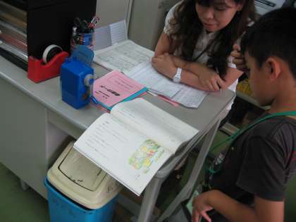 アドバイザーの方に音読を聞いてもらったり,学習課題をしたり,プリントをしたりして,しっかり学習しています。