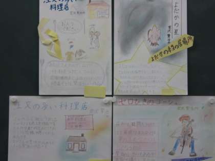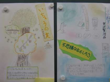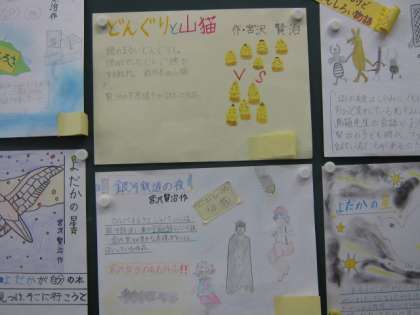 教科書の「やまなし」「イーハトーヴの夢」を読み取った後,他の賢治の作品を読み,ポップをかきました。
