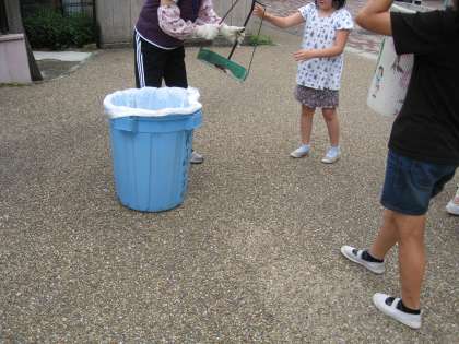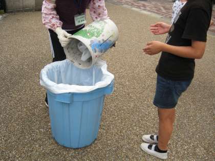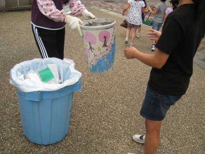 清掃活動では,ゴミの処理について,教室など清掃場所から収集場に持って行って,管理用務員さんに渡しています。