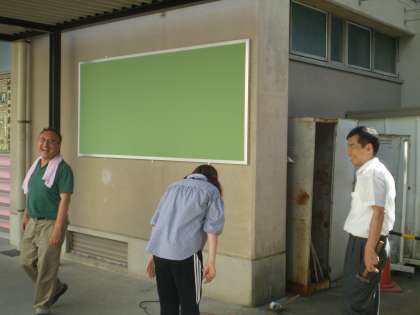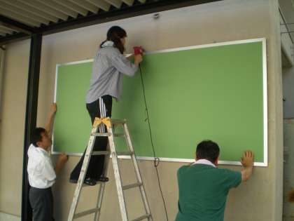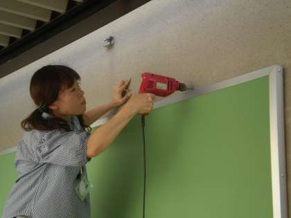 講堂正面出入り口北側壁面に掲示板が取り付けられました。