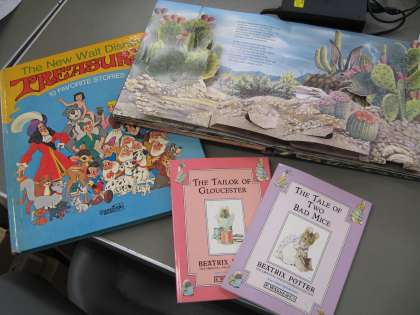 また,楽しい絵本やビデオなどもありました。海外出張や旅行の折に購入してこられたご家族にとって思い出深い数々の絵本もいただきました。