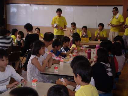昨晩の食事が午後6時ですから,13時間経っています。しかも,夕食後にはキャンプファイヤーや花火,天体観測にきもだめしと,お楽しみプログラムが目白押しでした。早朝からは,カブトムシやクワガタを採りに山に出かけた児童もいました。