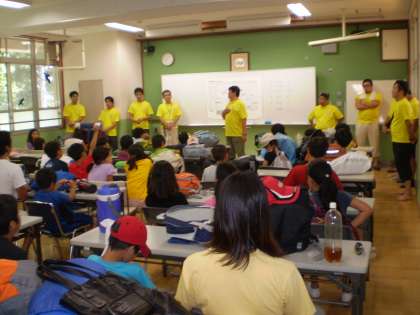 疲れきった姿の児童。
