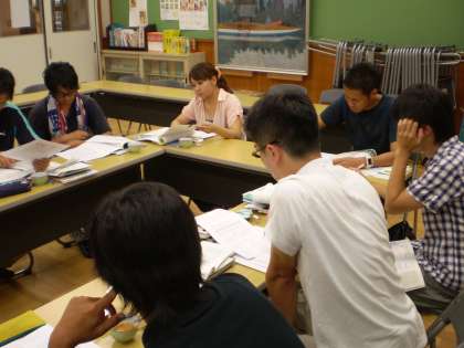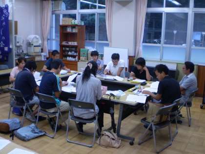 子どもが興味をもって自ら追究していくことができる社会科の授業を目指して,夏休み明けの水産業の学習について熱心に協議がなされていました。