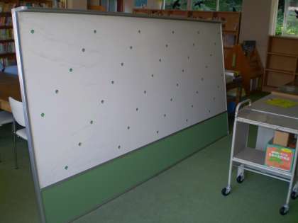 図書室の黒板の使い勝手が芳しくないため,この度の図書室整備の一環で,ホワイトボードに取り換えることにしました。