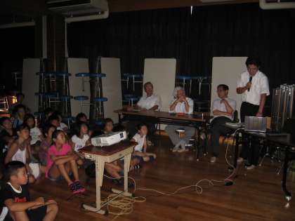 学校運営協議会理事長でもある,本学区自治連合会会長様のごあいさつの後,「水すまし大作戦」担当の方からのお話を,子どもたちは真剣に聞いていました。