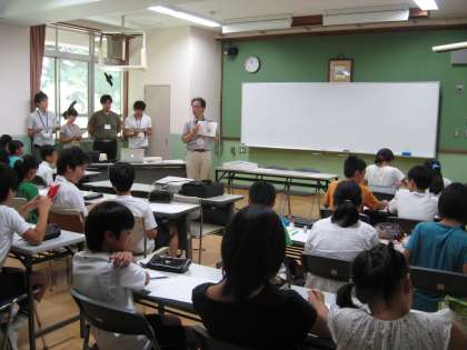 6年生は今,総合的な学習の時間に「未来を受け継ぐわたしたちの松ヶ崎」という単元を学習し出しています。5日の3,4校時に工芸繊維大学の先生や学生の方々が来てくださり,小大連携企画「30年後,100年後の松ヶ崎をイメージしよう!」とお話していただきました。