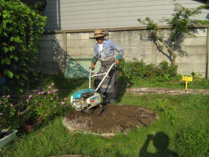 現在,栽培農家も少なく種を探していたところ,農業協同組合長の中川 助嗣さんから貴重な種をいただくことができました。来週の種まきに向けて,今日は土づくりをしていただきました。