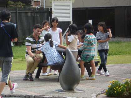 ALTのジョナサン先生ですが,着任当日の昼休みには,早くも写真のような光景が見られました。