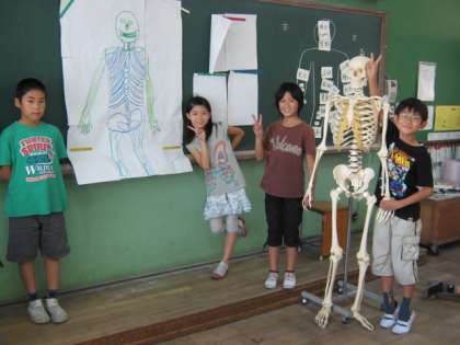 という問題を解決するために,理科室のガイコツ(骨格標本)に教室まで出張してもらいました。
