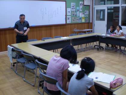 食事係は,ふれあいサロンに集まりました。食事係の‘使命’や活動内容について,担当の久保先生から話があり,仕事を学びました。