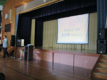 今日の終業式では,学校長から全校児童に‘もう一つの通知票’が,講堂のスクリーンに示されました。