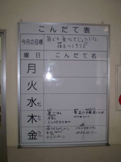 今月の目標は,「何でも食べて じょうぶな体をつくろう」です。