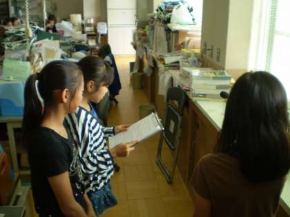 昼の給食時間の校内放送です。