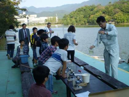 環境委員会所属の児童9名が,5・6年児童代表で,宝ケ池の水質検査に出かけました。