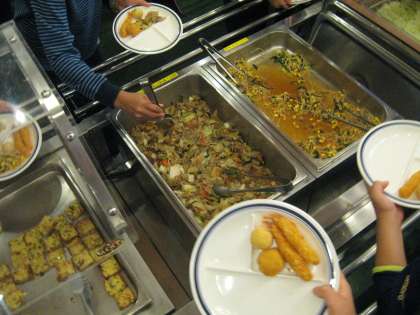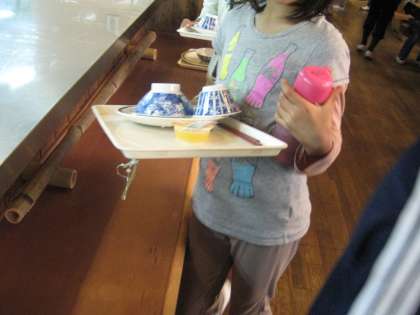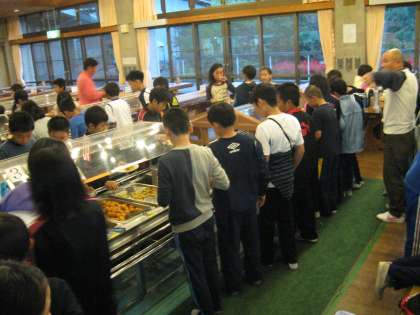 いよいよ午後5時から夕食です。エビフライもあって,みんな喜んでいました。