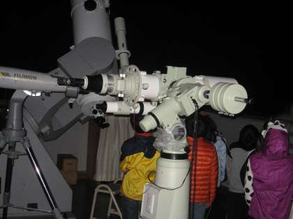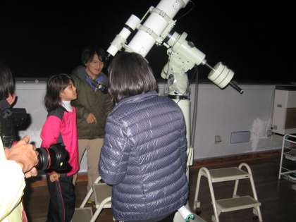 夕食後,天体観測をしました。大きな天体望遠鏡で,星や星雲を見ました。
