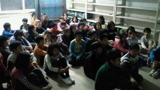ナイトハイクが始まりました。本日最後の活動です。雨が降っていますが,