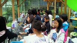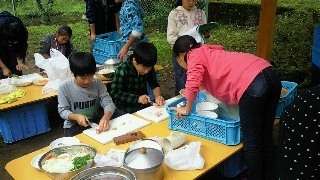 野外炊事開始