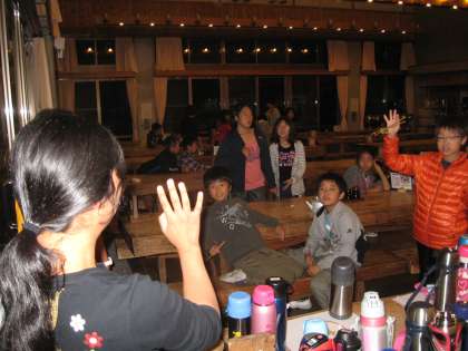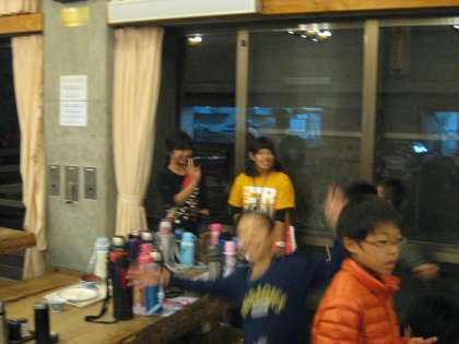 夕食の途中,初日からお世話いただいた学生ボランティアさんの一人が,大学の授業の関係で山の家を離れることになりました。