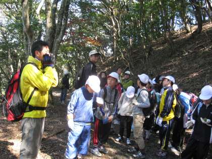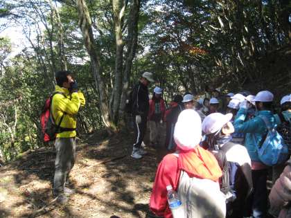 休憩時には,引率してくださっている山の家の方から,自然に関するお話が聞けました。