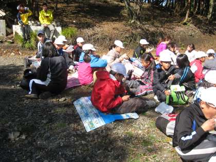 頂上を過ぎた,日差しのある暖かいところでお弁当にしました。