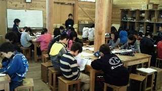 花背焼きの後,5日間の活動を振り返って反省しています。