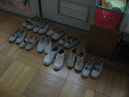 保健室の前を通ると,上ぐつがこんなにきれいにそろえて脱いでありました。保健室の中をのぞくと,健康委員会が活動していました。