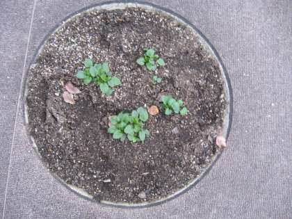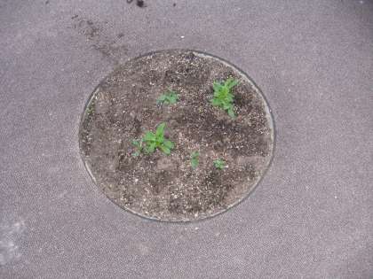 ちびっこ広場には,直径約60センチメートルの円い花壇が全部で16箇所あります。その全部に靴で踏んだ跡があるのを発見しました。子どもの靴型のようです。