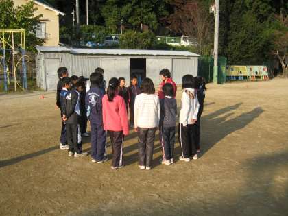 練習の最後に円陣を組んでいるところです。