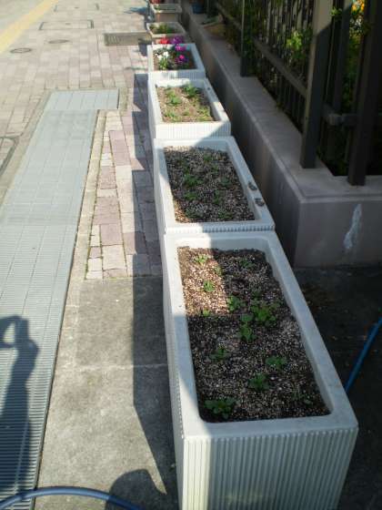 これらのプランターにも,苗が植えてあります。