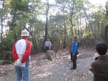 打ち合わせを一旦終えて,参加者全員で里山(学校北側の立正会所有の山)を実際に見に行きました。