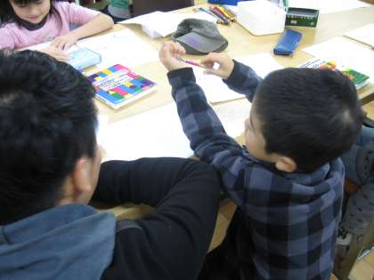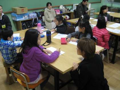 「未来EXPO実行委員会」のメンバーの学生さんが子どもたちの中に入って,ヒントを示したり子どもたちの話を聞いたりしながら,子どもたちの想像をふくらませていました。